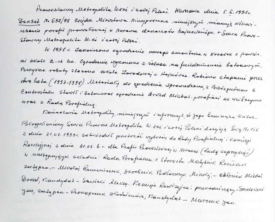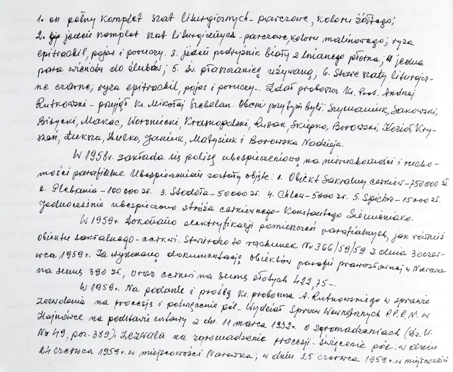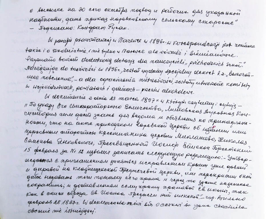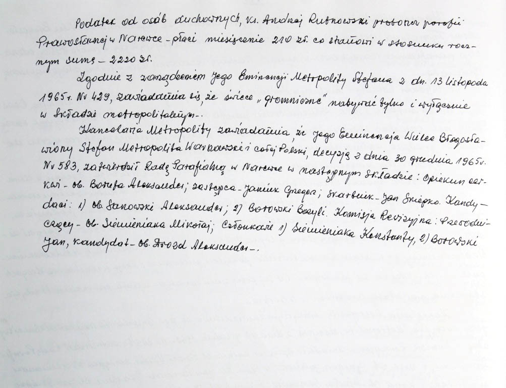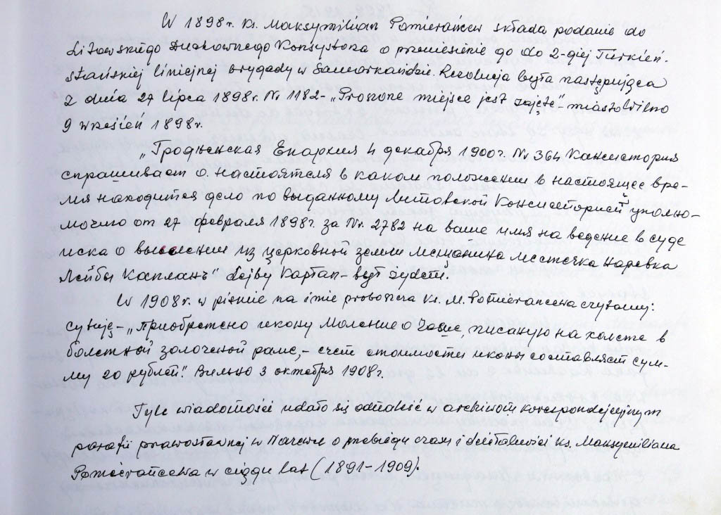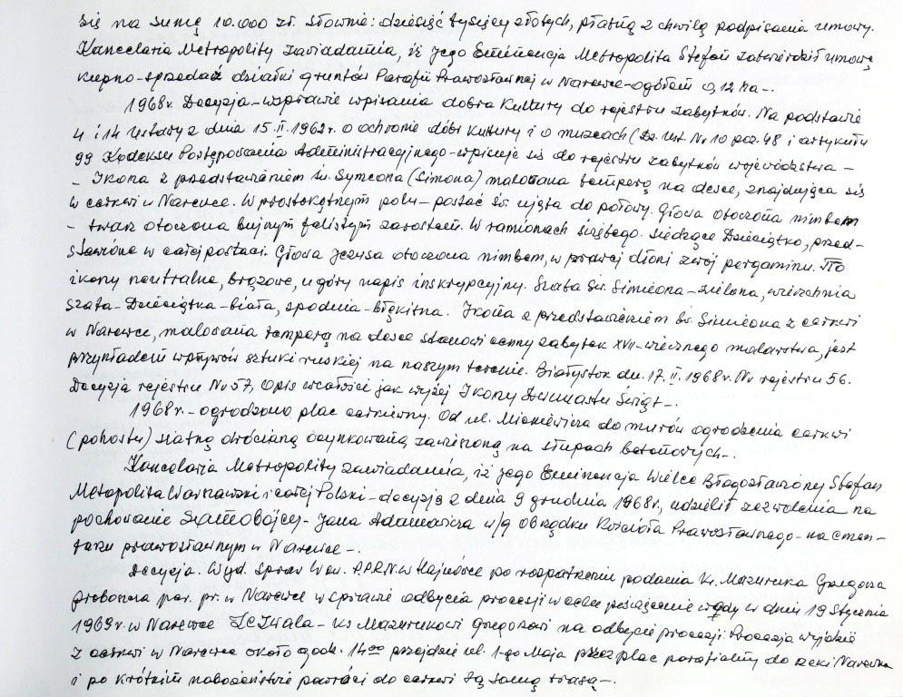 Informacje zebrane o historii cerkwi w Narewce przez proboszcza ks. Białomyzego.