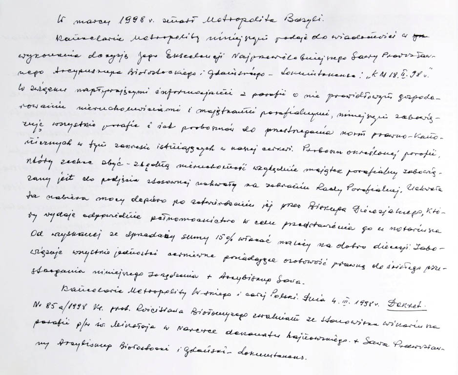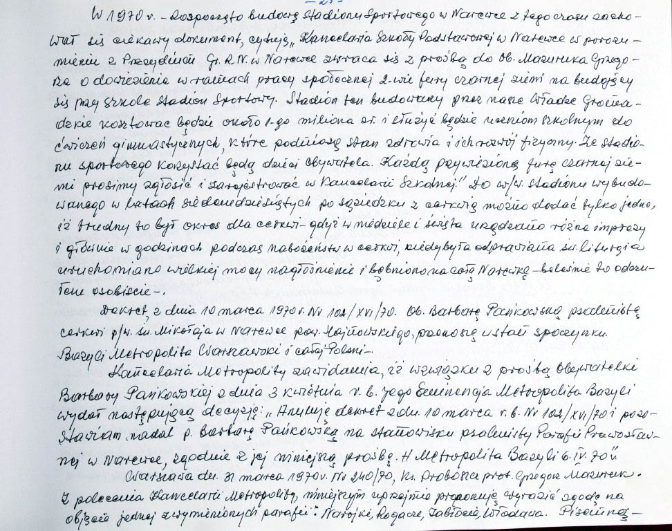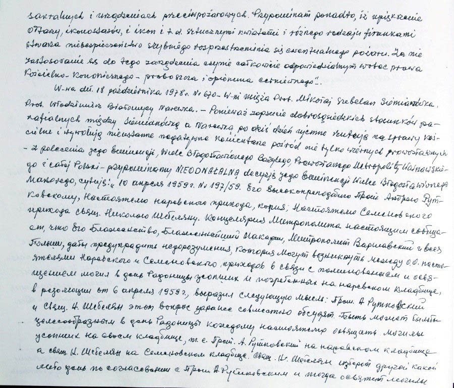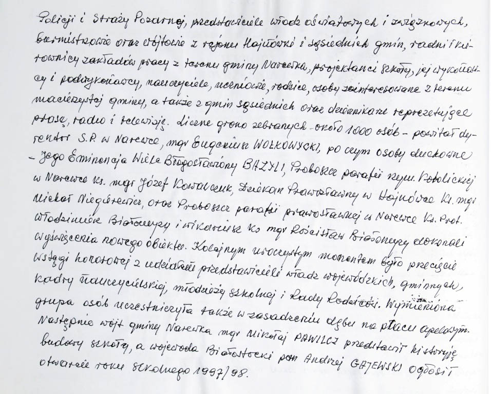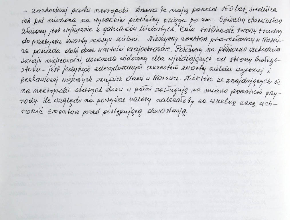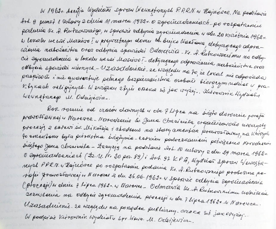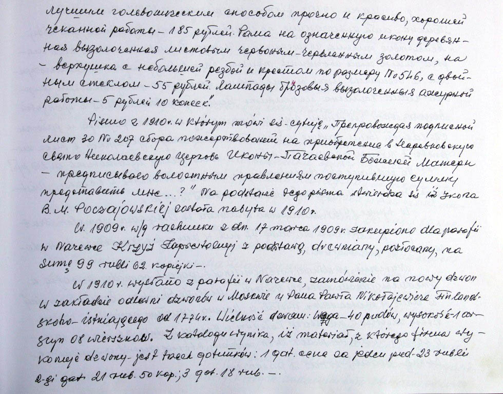 Informacje zebrane o historii cerkwi w Narewce przez proboszcza ks. Białomyzego.