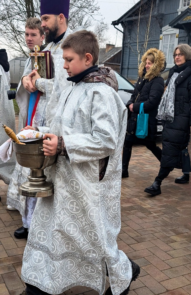 "Во Иордане крещающуся Тебе, Господи, Тройческое явися поклонение: Родителев бо глас свидетельствоваше Тебе, возлюбленнаго Тя Сына именуя, и Дух в виде голубине извествоваше словесе утверждение. Явлейся Христе Боже и мир просвещей, слава Тебе."